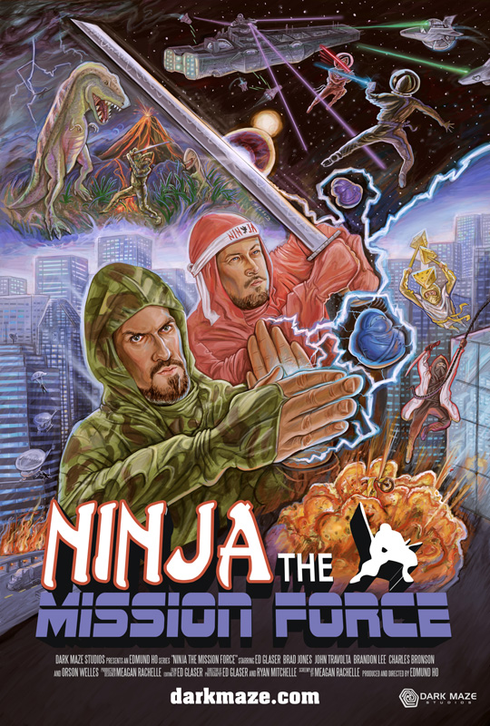 Ninja the Mission Force is a loving homage to the notorious cut-and-paste ninja films of IFD and Filmark like “Ninja the Protector” and “Ninja Terminator”, in which ninja-based storylines are incongruously crowbarred into unrelated films. The series stars Ed Glaser and Brad Jones (of “The Cinema Snob” fame), as well as a host of Hollywood stars through the miracle of archive footage.
