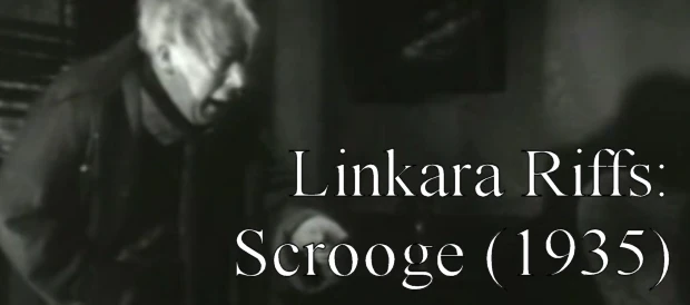 Linkara: Oh, hi, there! Didn't see you come in. Probably because I'm talking to a camera. You know, I'm just standing here in my Freddy Krueger sweater and my traditional Christmas meal, microwave popcorn in a pan on the stove, and I got to thinking to myself, I should give you guys a little Christmas treat this year. So, I went out to get myself a true holiday classic for us to riff on today. Unfortunately, I couldn't secure the rights to that, so instead, we are getting the very first sound version of Charles Dickens' "A Christmas Carol", aptly titled Scrooge! Today, we are joined in the riff theater by Will Wolfgram, who you might know as Jaeris the Gunslinger, or Snowflame, or the guy who plays the physical body of Lord Vyce because I'm too overweight, and, of course, by Amethyst, the voice of Nimue and my prop maker. Sit back, relax, and enjoy this festive holiday tale of death, ghosts, and other unspeakable horrors.