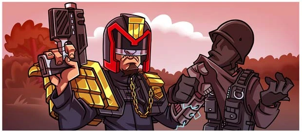 The Gort Spaceman gives him a salute and leaves. The guards continue to fire as NC hides behind a bush. He feels around his uniform and finds the energy gloves.
